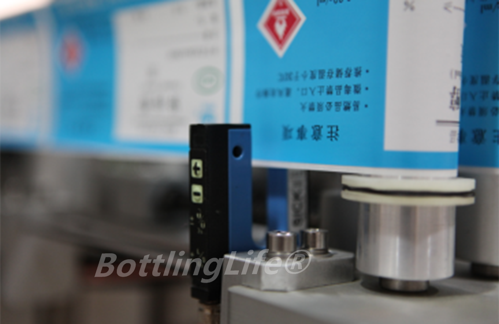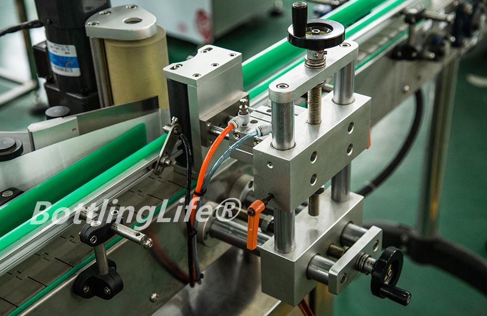 This labeling machine is designed to apply a partial or full wrap-around label to round bottles. This is done using a motorized wrap-around system that electronically synchronizes the speed of the labeling head with the speed of the container.