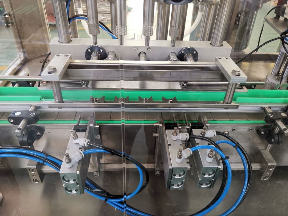 The inline filling capping monoblock is designed to operate at a fast filling speed. It can efficiently fill, screw, and label bottles of various sizes ranging from 5ml to 120ml. This monoblock is suitable for filling various products such as nail polish, e-liquid, essential oils, flavors, dyes, and reagents. It offers flexibility by accommodating different bottle formats, ensuring seamless production processes.